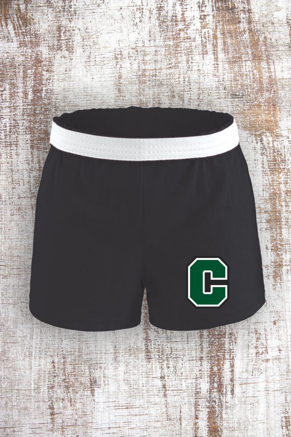 Cute ladies' athletic shorts with the traditional Varsity C graphic.